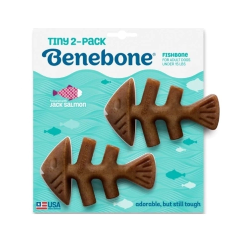Benebone é um brinquedo de roer feito de Nylon e algum ingrediente natural. Nesse caso, salmão.