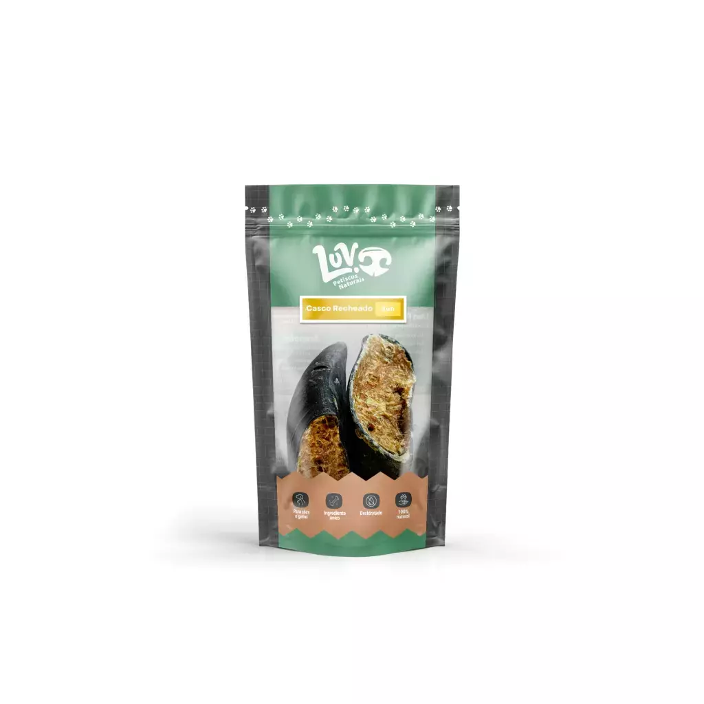 Escolha o Casco Bovino Recheado com Carne de Frango Luv Tamanho P e proporcione ao seu pet momentos de prazer, saúde e diversão com um produto natural e artesanal que ele vai amar roer!