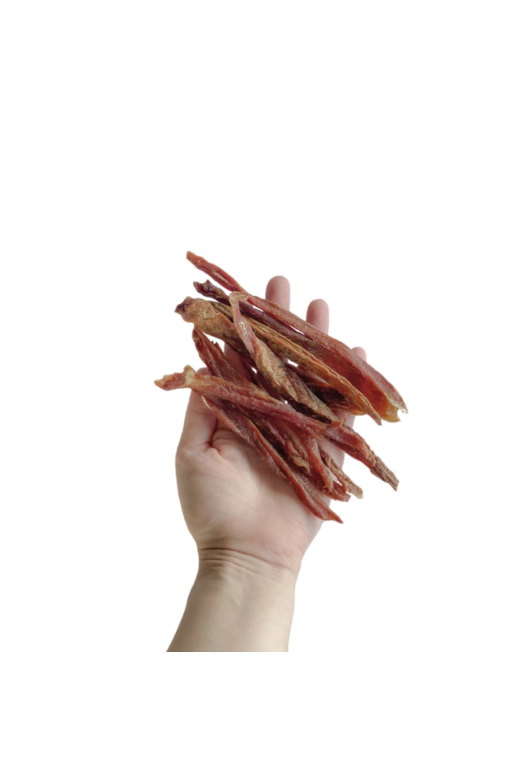 DESCRIÇÃO DO PRODUTO Contém 100g de Filé Mignon de porco, desidratado lentamente em baixa temperatura. Produto Fabricado artesanalmente, não possui adição de conservantes e corantes, 100% natural. Alimento de alto valor agregado, pode ser oferecido como recompensas positivas e enriquecimento ambiental, ótimo para treinos e fácil de quebrar. Pode-se oferecer até 10% da quantidade de alimento diário do animal. Benefícios: Filé Mignon suíno faz parte da categoria de carne desossada na alimentação natural, baixo teor de colesterol, fonte natural de proteína. Dificuldade: Fácil; Apropriado para cães e gatos saudáveis de todos os portes e tamanhos. Observação: Produto natural, possui variação de tamanhos, formatos e cores.