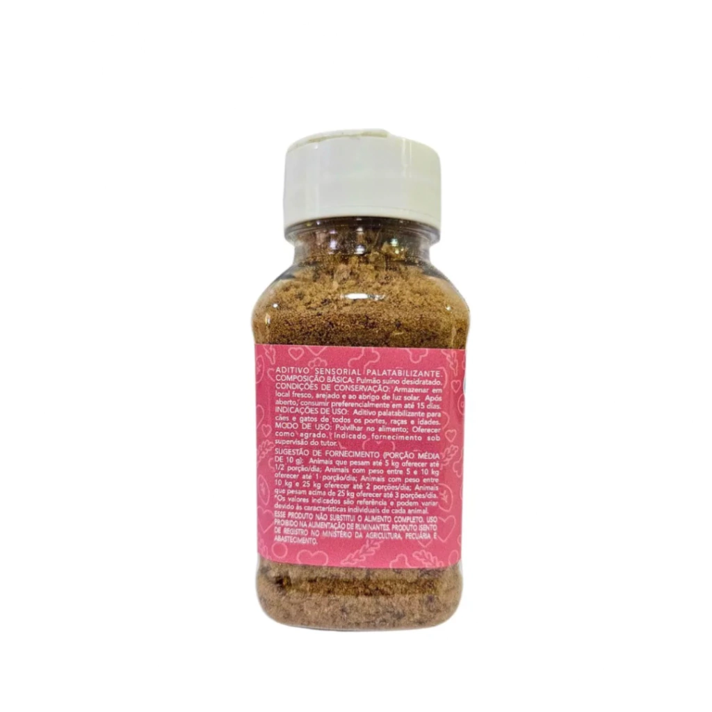 Surpreenda seu cão ou gato com um palatabilizante 100% natural, feito a partir do pulmão suíno desidratado, sem adição de corantes, conservantes ou qualquer aditivo químico. Ideal para pets de todos os portes, este produto é perfeito para tornar a alimentação mais atrativa e saborosa.