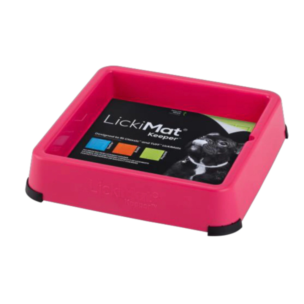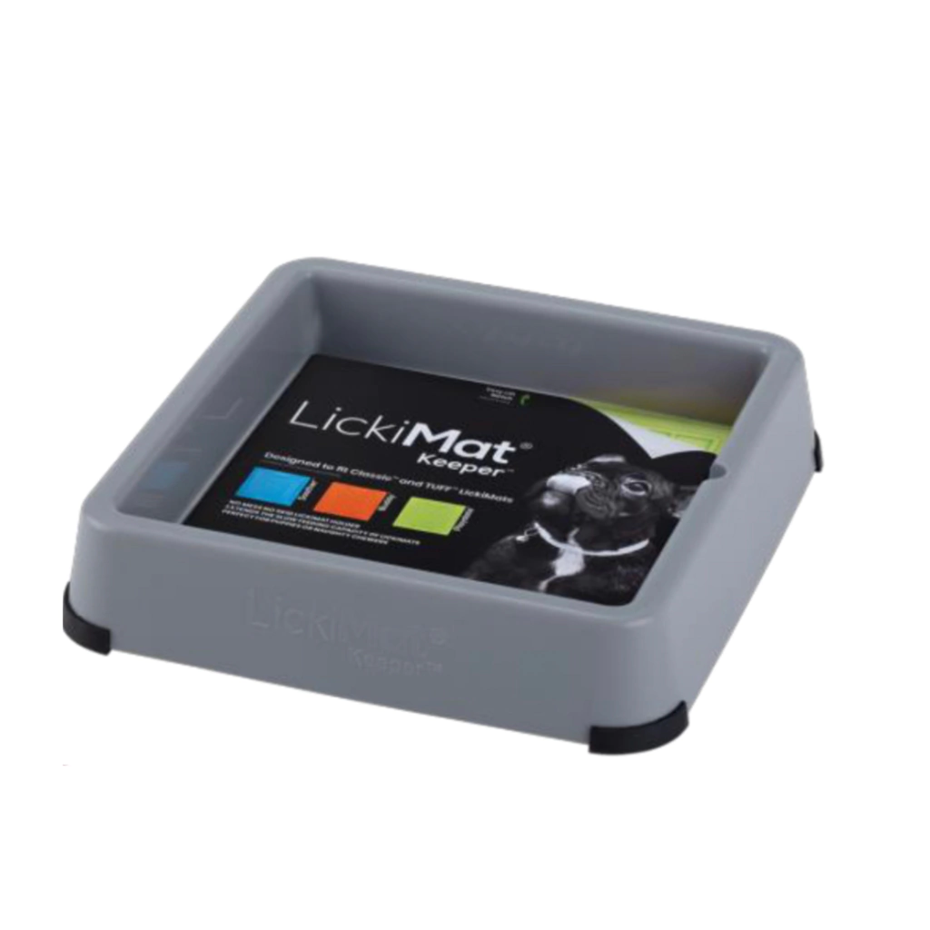 O ato de lamber libera endorfina. Os cães lambem para se acalmarem quando estressados. Por isso a Lickimat lança produtos perfeitos para ansiedade, distração, banho e tosa, treinamentos e tempestades por conta do medo de trovões. LickiMat Keeper foi desenvolvido para colocar um lickimat dentro, evitando que o alimento se espalhe pelo chão e mantendo o LickiMat firme, sem derrapar. Serve para LickiMats Clássicos e Tuff. Capacidade de 6 xícaras de alimento Modo de usar: Coloque o lickiMat dentro do LickiMat Keeper e alimentee o cão preferencialmente com alimentos pastosos ou naturais crus. Após o uso, remova e lave tudo com detergente neutro. Lave bem antes de usar e após cada uso. Espalhe o alimento pastoso favorito de seu cão pela superfície do LickiMat. Seguro para ser usado em máquinas de lavar louça. Pode ser usado em micro-ondas e freezer. Cuidados: Não é um brinquedo de morder. Supervisione e ensine seu cão a usar o produto. Se algum pedaço estiver rasgado ou soltando, descontinue o uso. Nunca deixe sozinho com o cão. Em caso de dúvidas, consulte um treinador de cães. Não é um brinquedo para crianças. Material: Plástico atóxico reciclado. Não contém silicone, PVC, BPA ou Ftalatos. Tamanhos23cm x 23cm