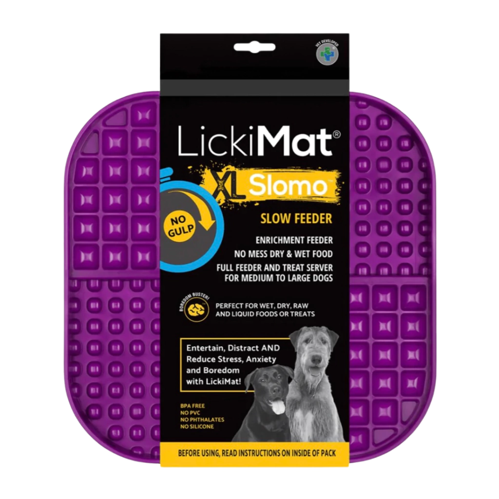 A LickiMat Slomo XL foi criada para transformar o momento das refeições em uma experiência mais calma, divertida e saudável. Desenvolvida por veterinários, combina duas texturas diferentes que estimulam o pet a comer mais devagar, ajudando a reduzir ansiedade, estresse e tédio, além de evitar engasgos e inchaços.