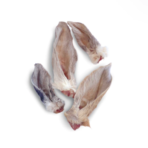 Contém 50 gramas (5/10 unidades) de orelhas de coelho. Elas são desidratadas lentamente em baixas temperaturas, são 100% natural, não possuem adição de corantes e conservantes. Apropriado para todas os portes, baixa resistência. Por ser um produto natural pode haver variação de tamanho, cor e formatos.