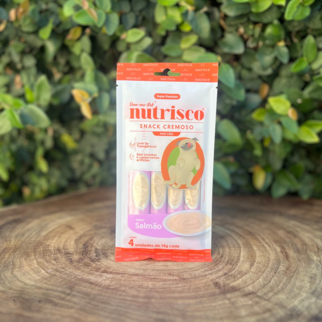 Garanta já o Snack Cremoso Sabor Salmão Nutrisco e proporcione mais sabor e saúde para o seu pet!