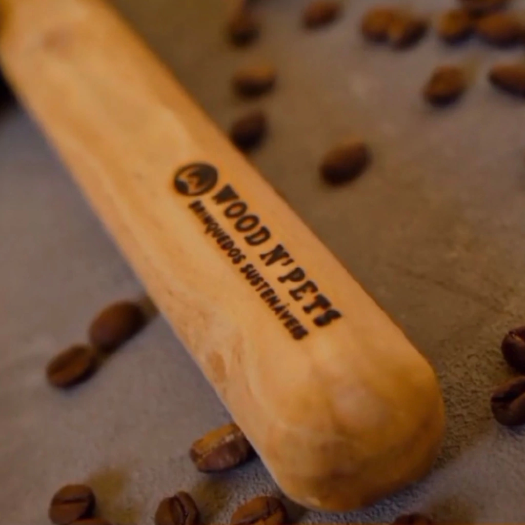 DESCRIÇÃO A linha de brinquedos Sustentáveis Wood n’Pet é feito de madeira do café com código de origem, que permite identificar de onde a madeira foi retirada de forma sustentável. A madeira do café é ideal para os cachorros, pois é fibrosa e não solta farpas. As fibras são celulose, que ajudam na digestão do cão e limpeza dos dentes. O Óleo de cocô que é utilizado na finalização do produto, além de fazer bem a saúde dos cães é um chamariz para a brincadeira. Wood n’Pet Stick é ideal para brincar com seu cão e deixa-lo saciar sua vontade de roer! BENEFÍCIOS - Com óleo de coco - Madeira fibrosa que não solta farpas - Composta por celulose que auxilia na digestão - Auxilia na higiene oral - Satisfaz o instinto de roer - Alivia o estresse e ansiedade - Madeira do café retirada de forma sustentável com código de origem ESPECIFICAÇÕES Contém: 01 unidade de Stick Material: Madeira de café com código de origem Dimensões aproximadas: Tam.P – 12cm de comprimento Tam.M – 20cm de comprimento Tam.G – 30cm de comprimento CUIDADOS Nenhum brinquedo é 100% indestrutível. O objetivo dos brinquedos é entreter seu animal para o gasto de energia física e mental. Mordê-lo faz parte de seu instinto, por isso não fique chateado caso seu pet destrua algum deles. Não deixe seu cachorro com o brinquedo novo sem supervisão, é importante estar presente até saber qual a sua reação com o produto. Por se tratar de um produto natural, pode conter ranhuras provenientes da própria madeira, variações de espessura e de coloração. Caso note que seu cão arranque pedaços grandes, descontinue o uso.
